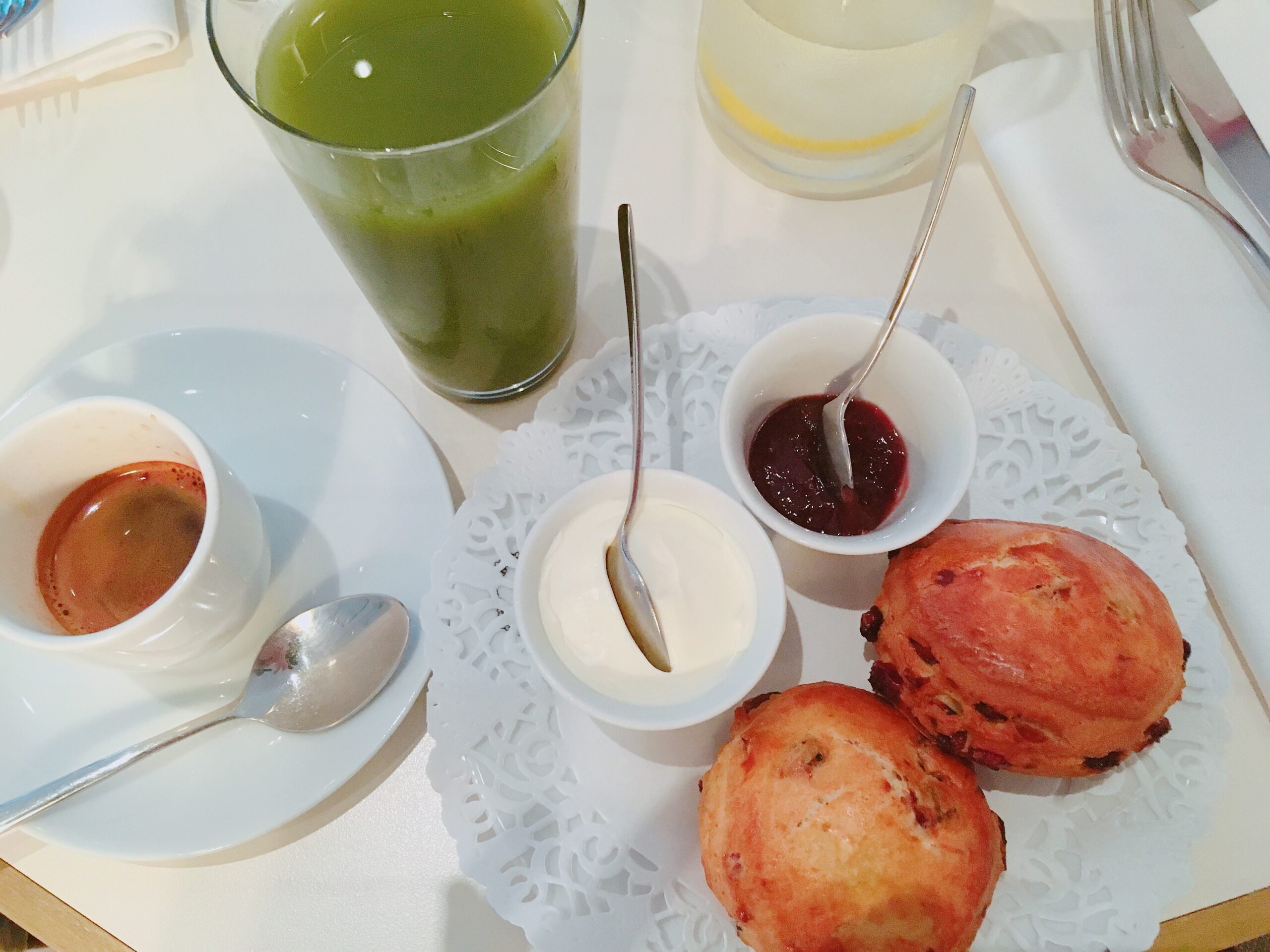 レモン水で喉を潤しているとホットコーヒーとともに美味しそうなスコーンが。。