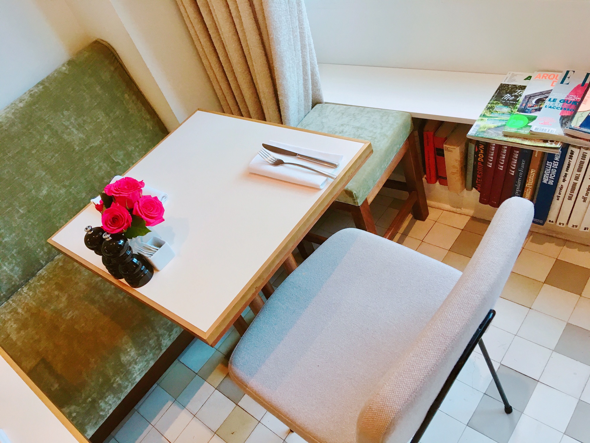 2018年当時。パリ到着早々、人気のお店ということで勇気を出して電話予約に挑戦しました。始めはあらかじめ用意したメモを見ながらフランス語でチャレンジしましたが、希望していた曜日がいっぱいとのこと。