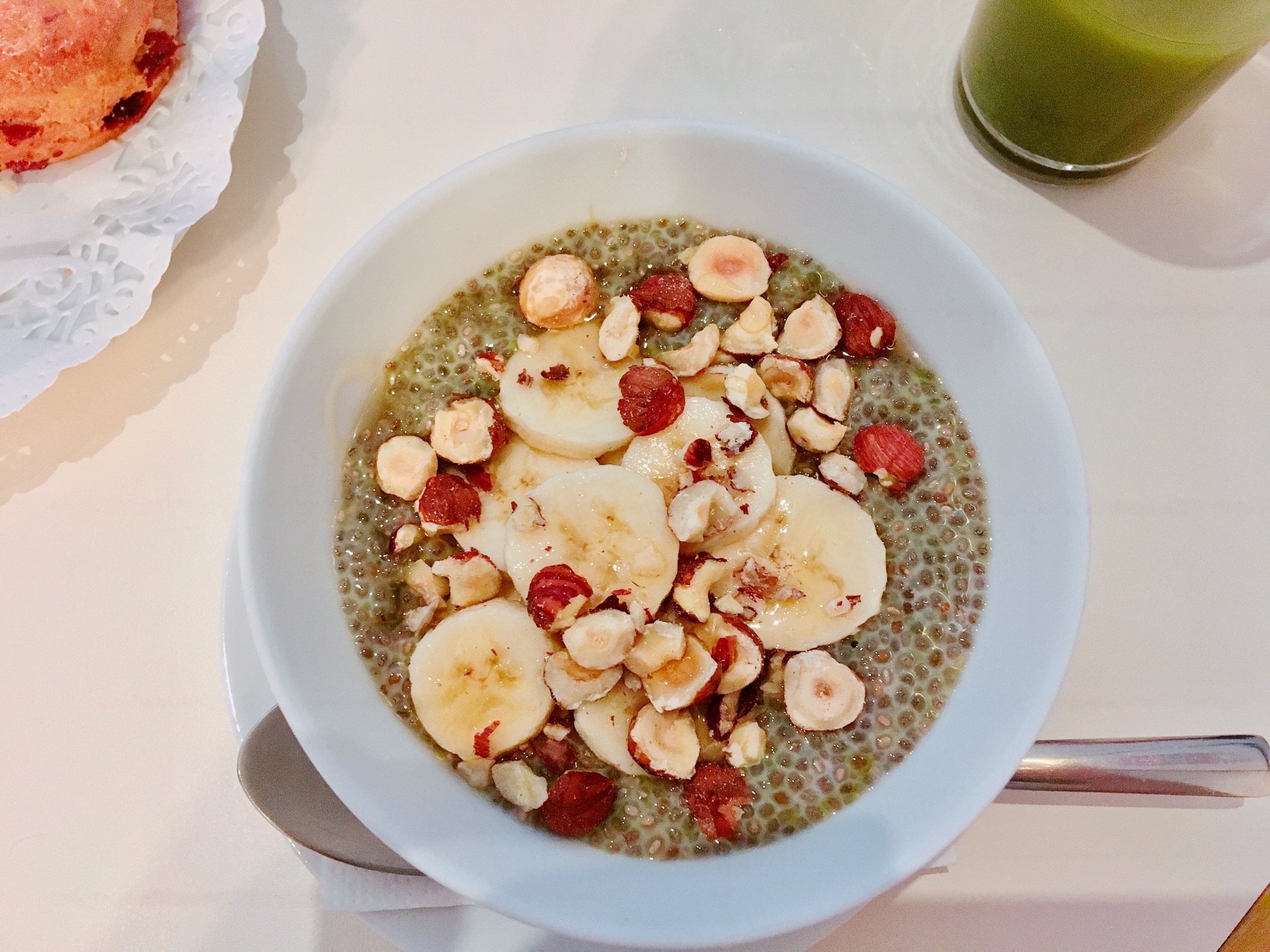 デザートは、たっぷりのチアシードにバナナとナッツが。意外と軽めで食べやすかったです。全体的に健康的な朝食でした。さすが、朝食専門店。旅行で不足しがちな栄養素を補えました。