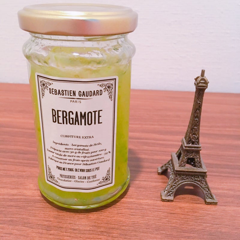 お土産に、ベルガモットのジャムと、バニラの香り漂うフレーバーティーを。ベルガモットキャンディ同様、口の中で柑橘の香りが広がります。金色の包装が、セバスチャンゴダールの紅茶。’Le thé noir de Sébastien Gaudard’