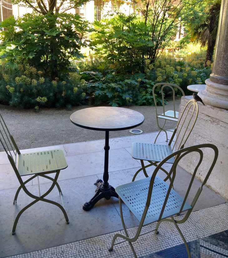 庭園に出ると、鳥のさえずりや、そよそよと揺れる木々や葉っぱの音が心地いいです。いつまでも聴いていたい。